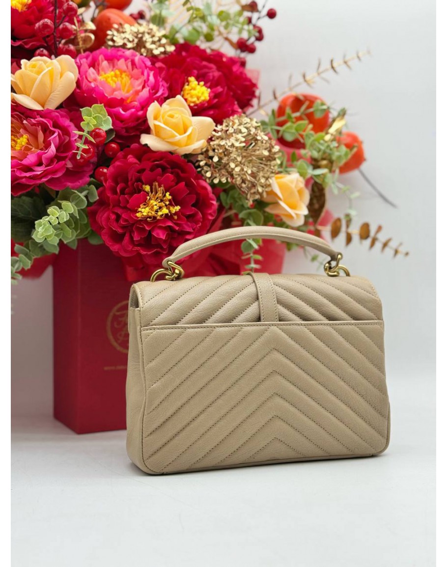 Tags: 2021 YSL SAINT LAURENT COLLEGE MEDIUM TOP HANDLE & SHOULDER BAG IN BEIGE CALFSKIN LEATHER