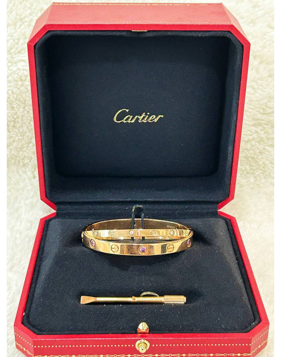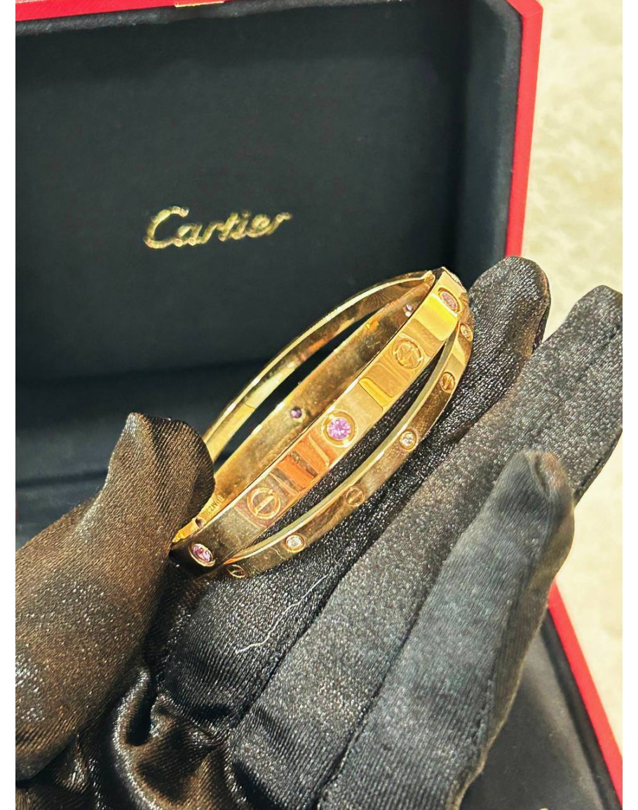 Tags: CARTIER DOUBLE LOVE BRACELET SIZE 16 LIMITED EDITION DIAMONDS WITH PINK SAPPHIRES 18K 750 ROSE GOLD
