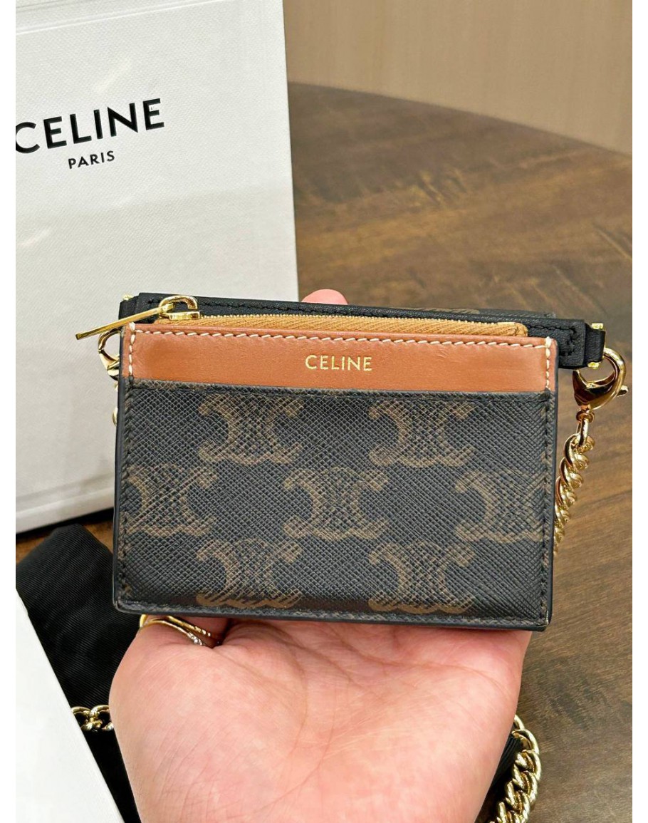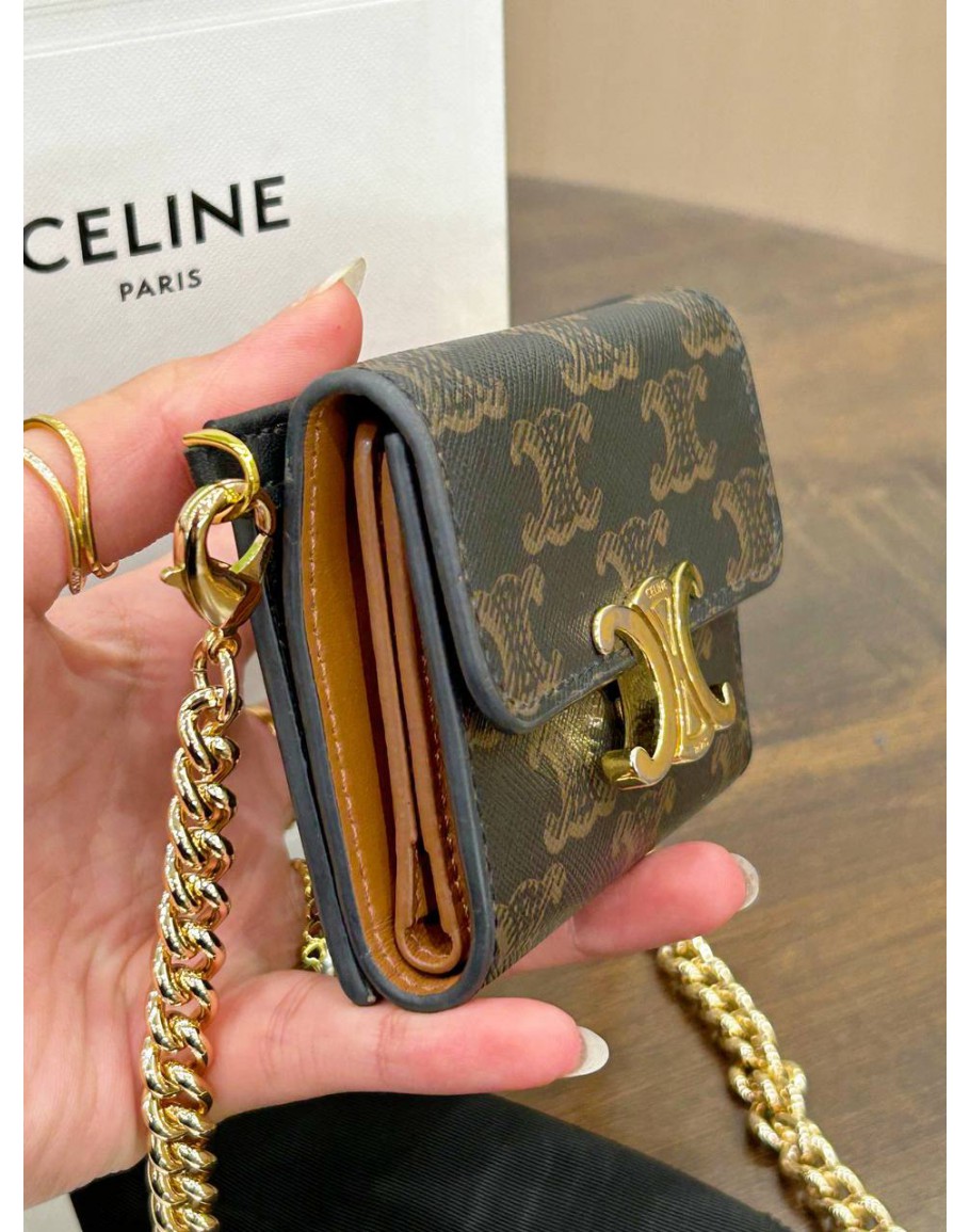 Tags: CELINE COIN PURSE / WALLET IN TRIOMPHE CANVAS & GOLD HARDWARE WITH CROSSBODY CHAIN