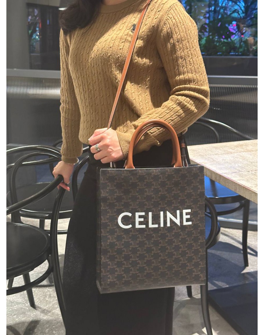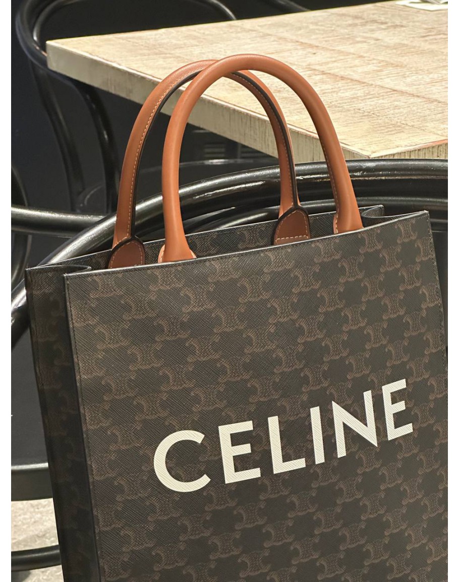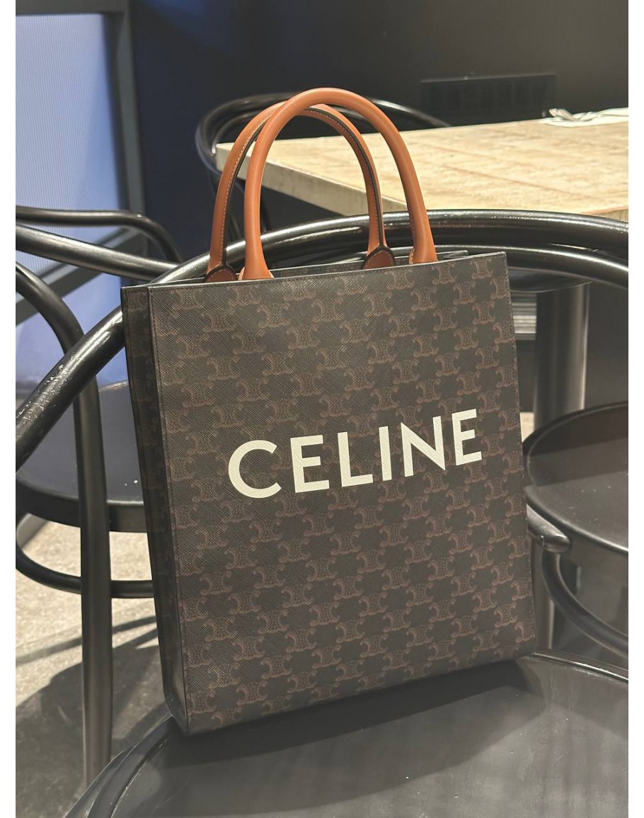 Tags: CELINE SMALL VERTICAL CABAS TOTE HANDLE BAG IN TRIOMPHE CANVAS & LEATHER WITH STRAP