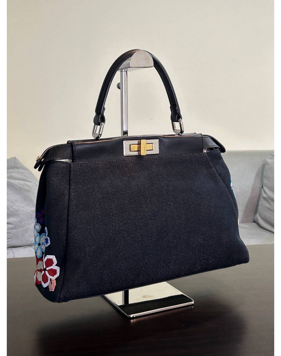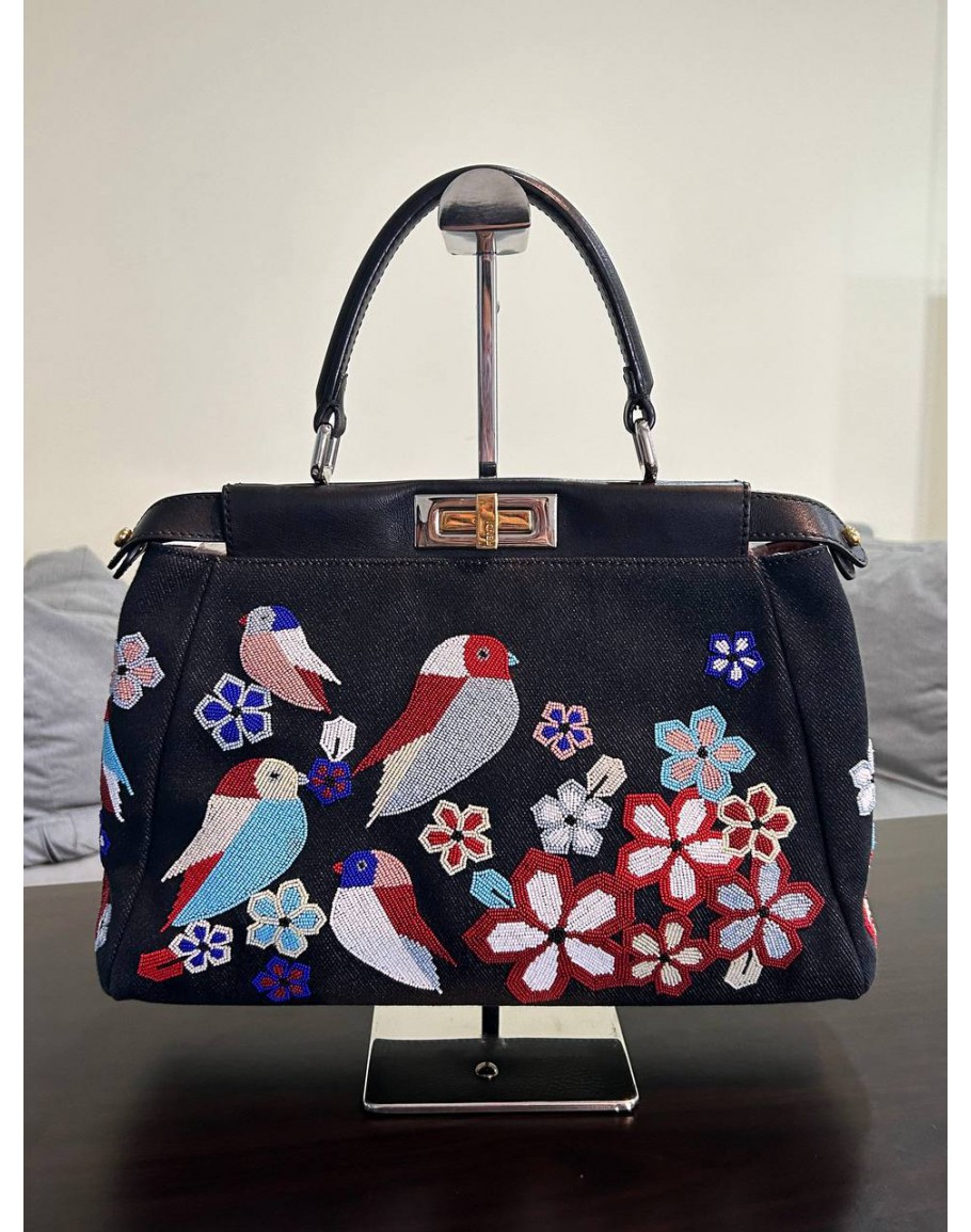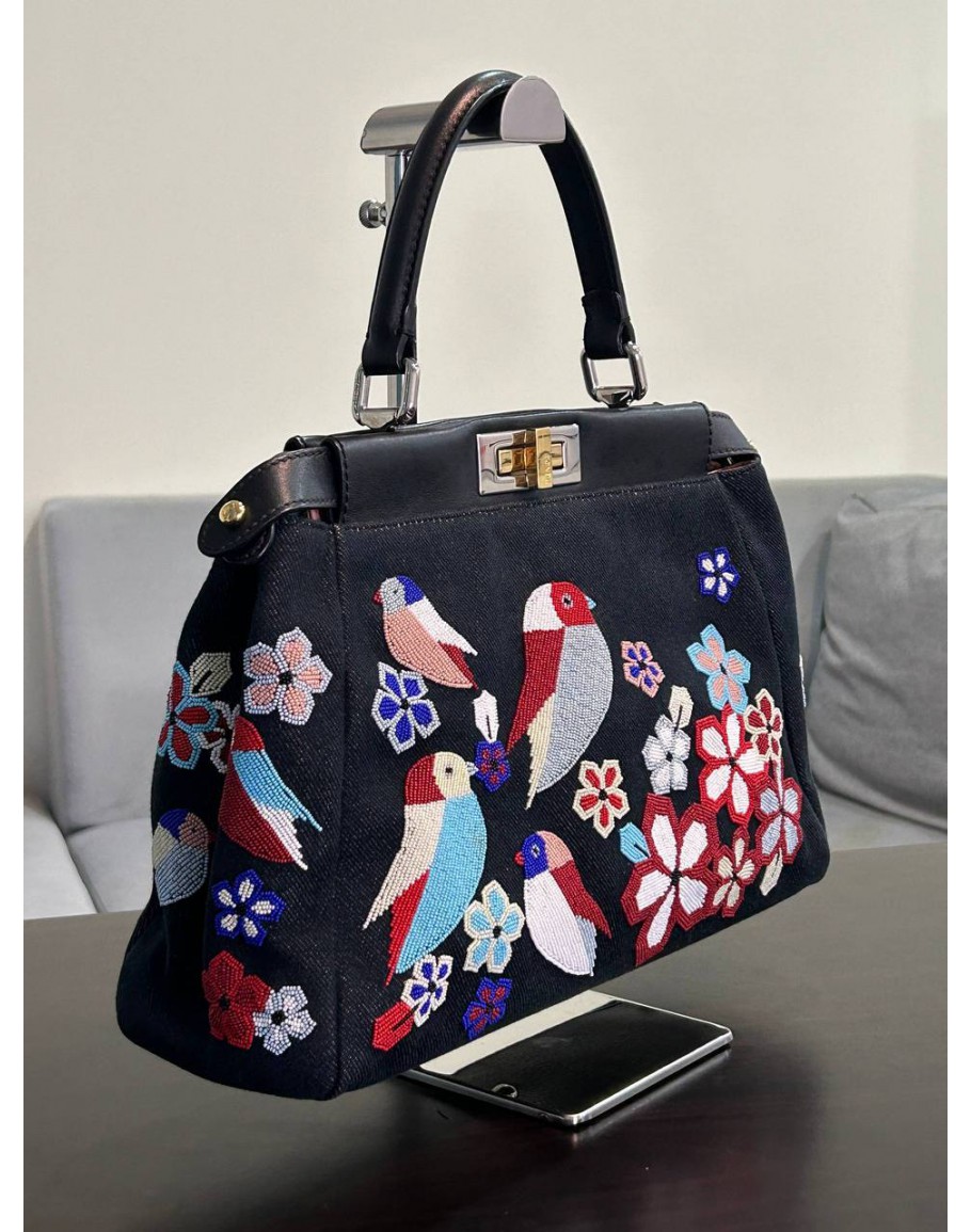 Product Code: FENDI MEDIUM PEEKABOO BAG DENIM VITELLO DOLCE BIRDS