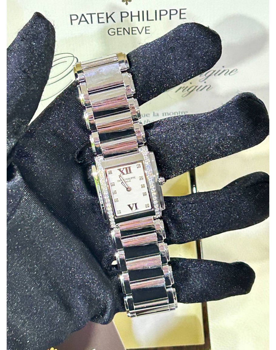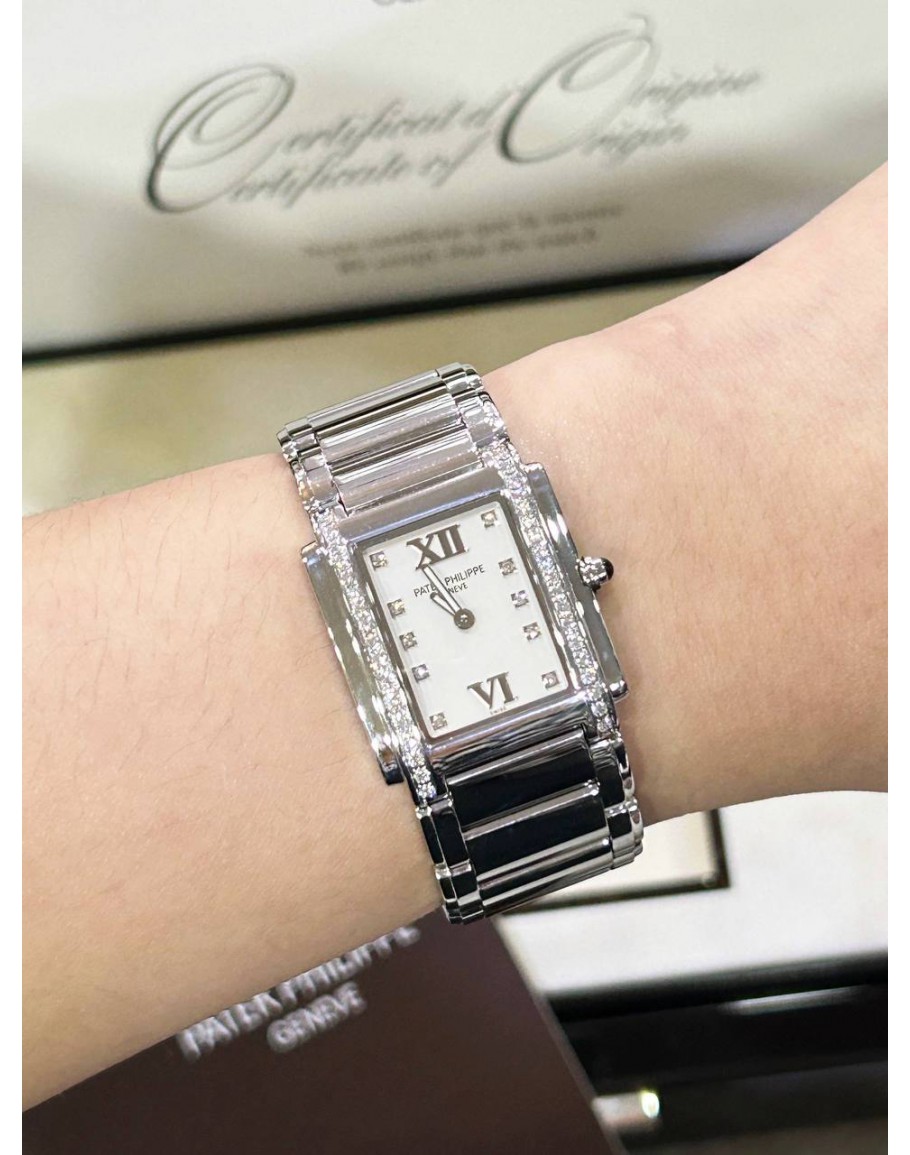 Tags: PATEK PHILIPPE TWENTY 4 DIAMONDS REF 4910/10A-011 WHITE DIAL 25MM X 30MM QUARTZ WATCH