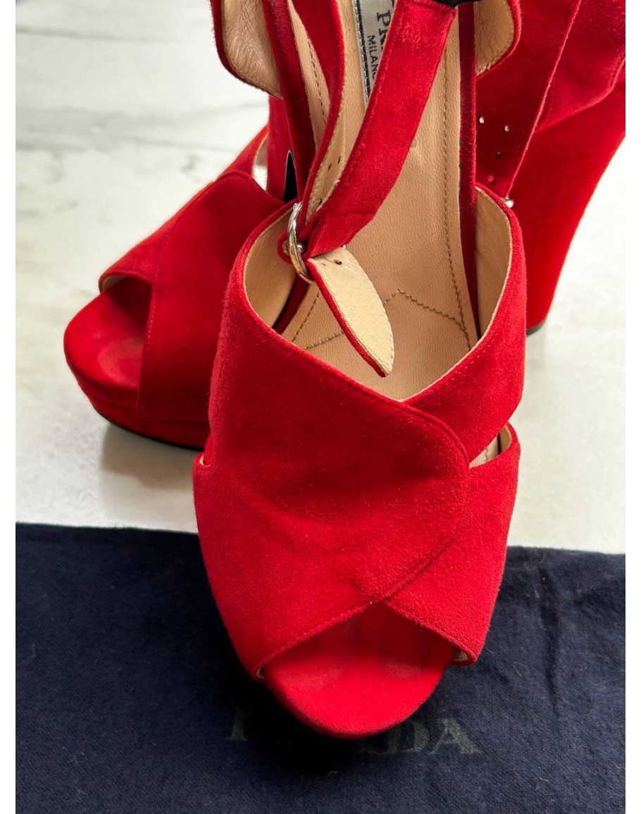 Product Code: PRADA PLATFORM IN RED SUEDE LEATHER