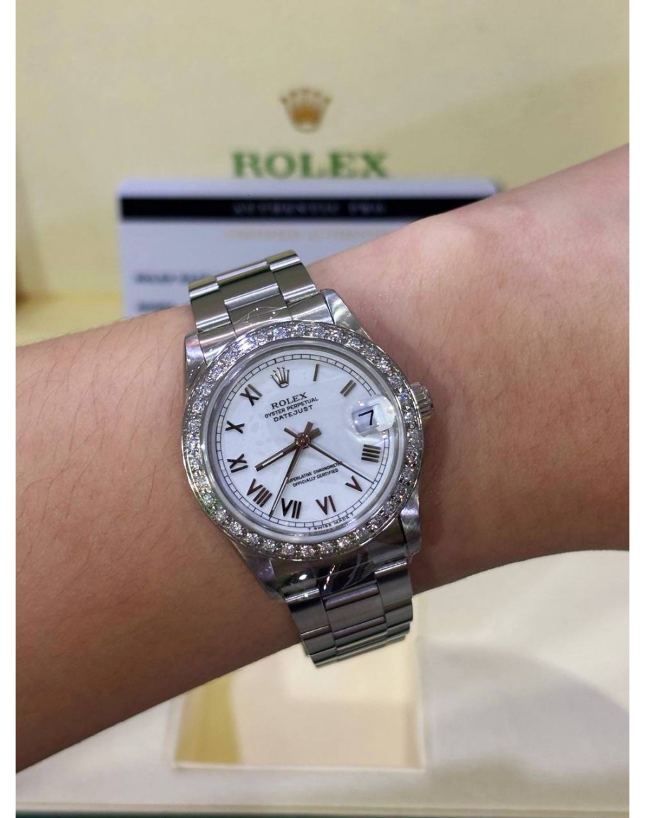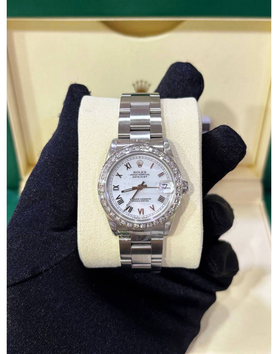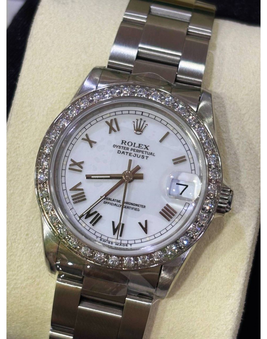 Tags: ROLEX DATEJUST 31 REF 68240 WHITE ROMAN NUMBERALS DIAL WITH DIAMONDS BEZEL 31MM AUTOMATIC WATCH