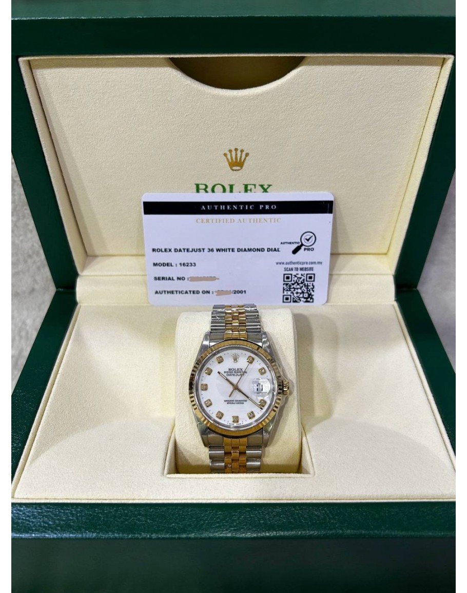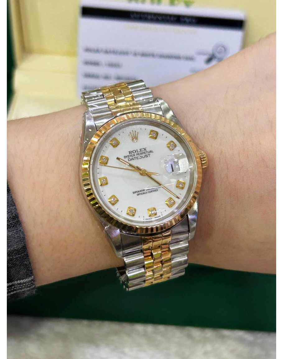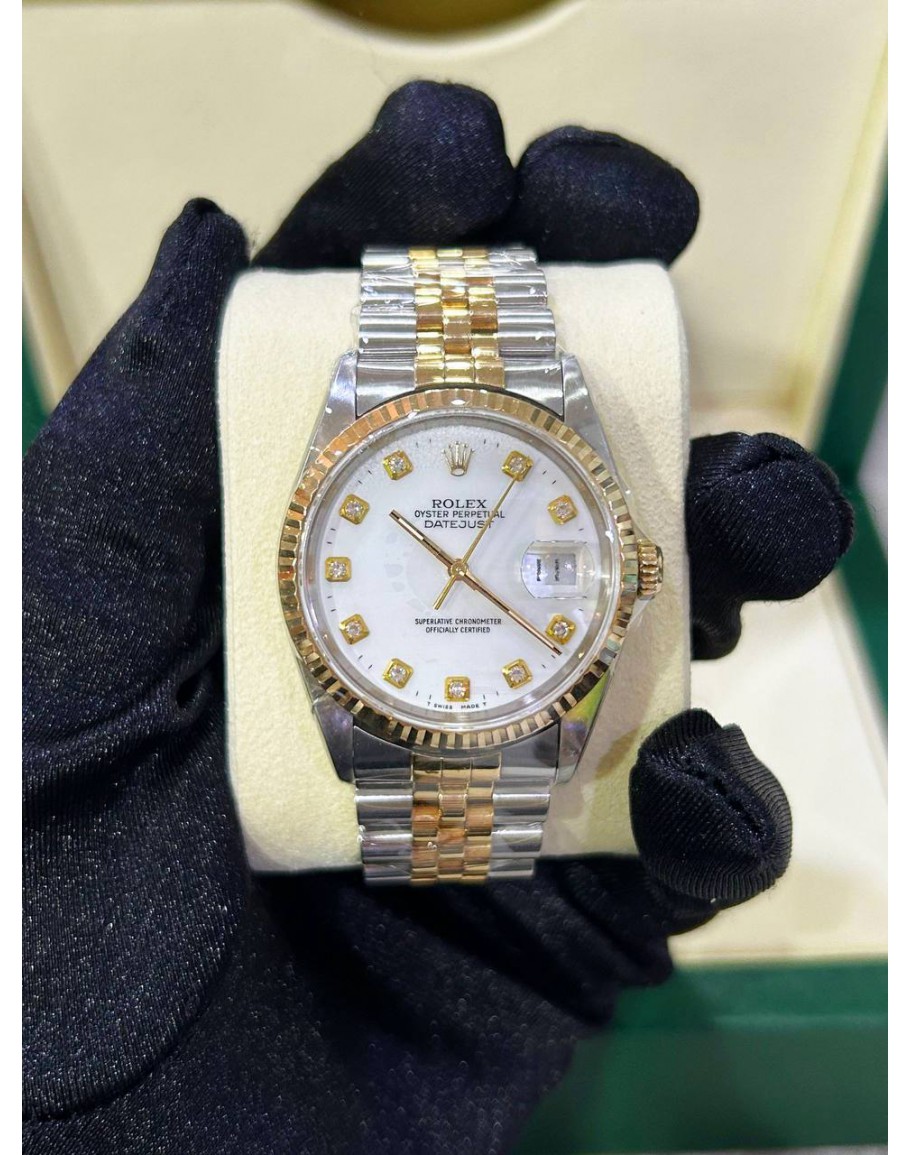 Tags: ROLEX DATEJUST 36 HALF 18K 750 YELLOW GOLD JUBILEE REF 16233 WHITE DIAL 36MM AUTOMATIC WATCH