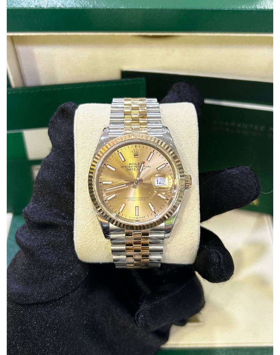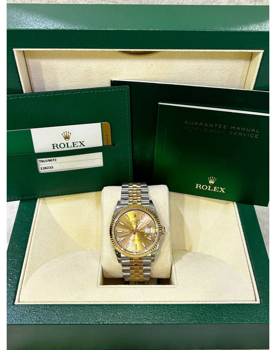 Tags: ROLEX DATEJUST JUBILEE 36 REF 126233 HALF 18K 750 YELLOW GOLD CHAMPAGNE DIAL 36MM AUTOMATIC WATCH