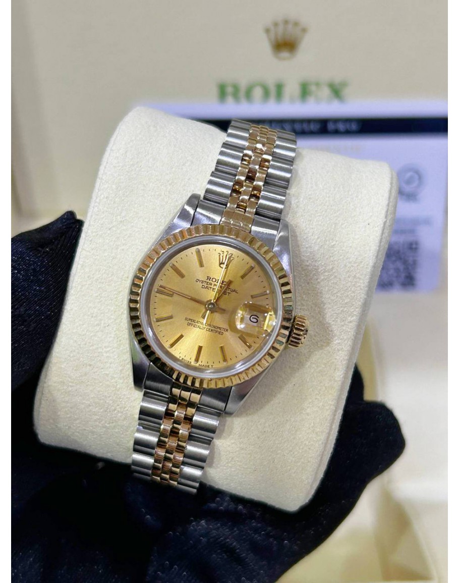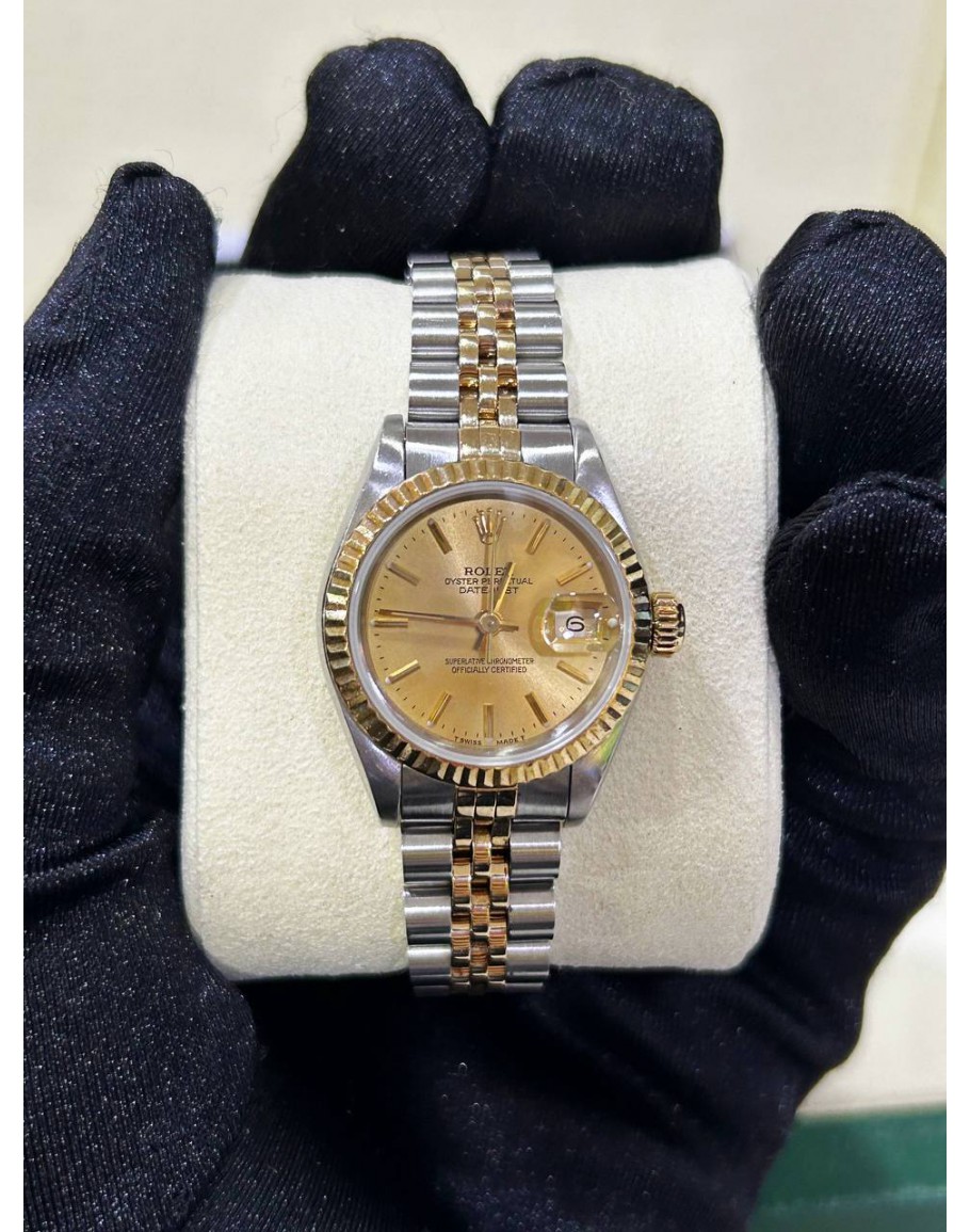 Tags: ROLEX LADY DATEJUST HALF 18K 750 YELLOW GOLD REF 69173 JUBILEE CHAMPAGNE DIAL 26MM AUTOMATIC WATCH