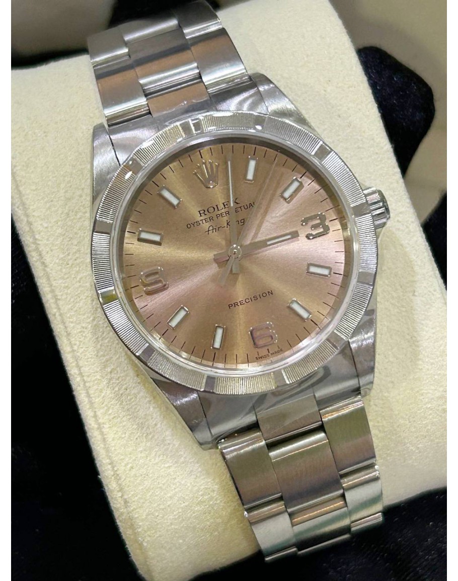 Tags: ROLEX OYSTER PERPETUAL AIRKING PRECISION REF 14010M SALMON PINK DIAL 34MM AUTOMATIC WATCH