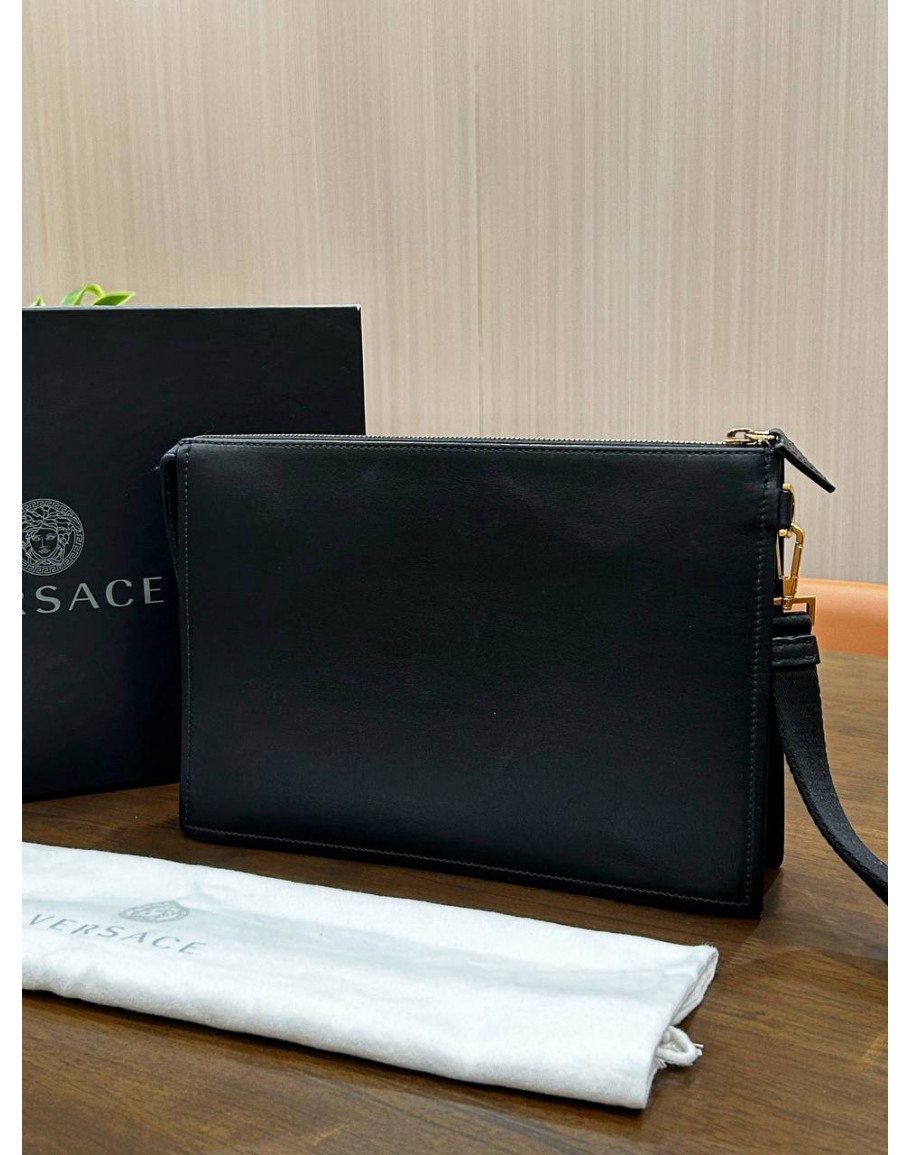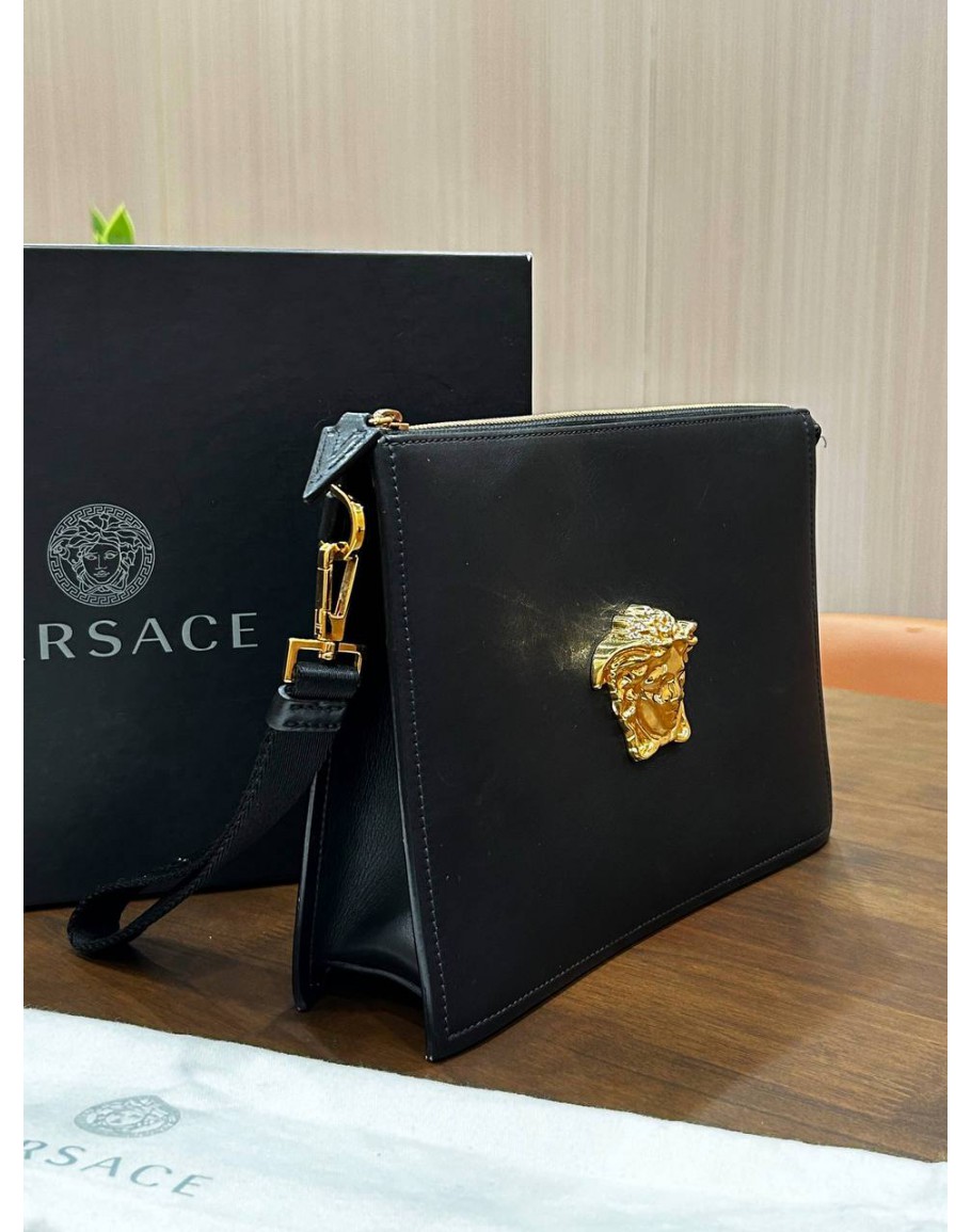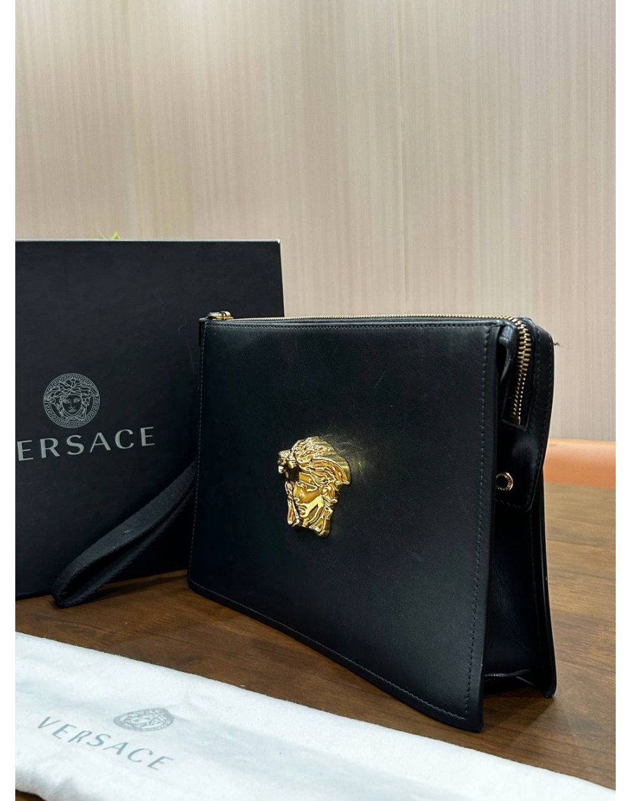Tags: VERSACE LA MEDUSA HEAD IN GOLD AND BLACK CALFSKIN LEATHER CLUTCH