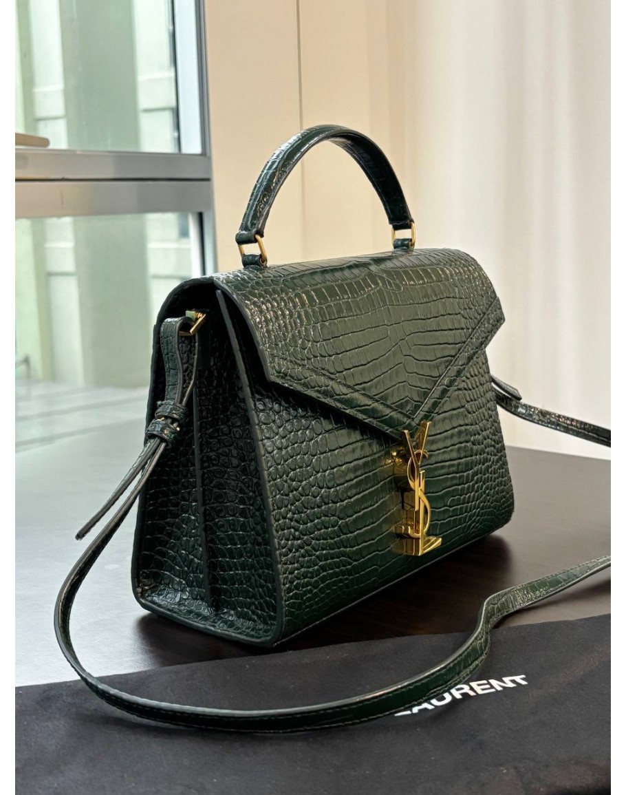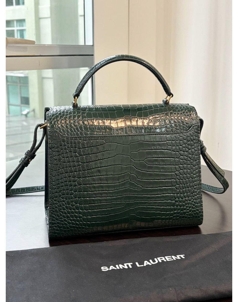 Tags: YSL YVES SAINT LAURENT CASSANDRA TOP HANDLE BAG IN DARK GREEN EMBOSSED CROCODILE LEATHER